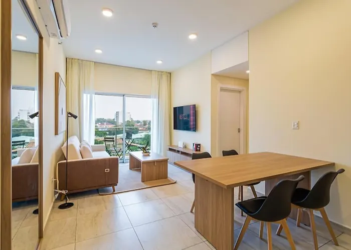 O apartamento Hestia At Asuncion Cozy & Bright 1Bdr In Villamorra inclui pátio e está localizado a caminhada de 25 minutos do Estádio Manuel Ferreira. Os hóspedes podem usar Wi-Fi tanto para fins de negócios quanto de lazer.